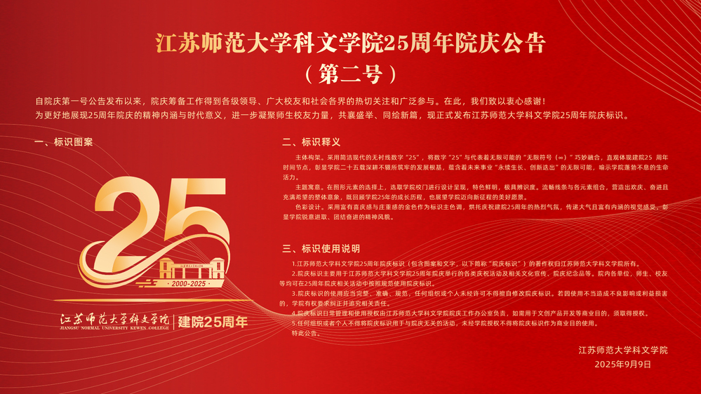 江苏师范大学科文学院25周年院庆公告(第二号)