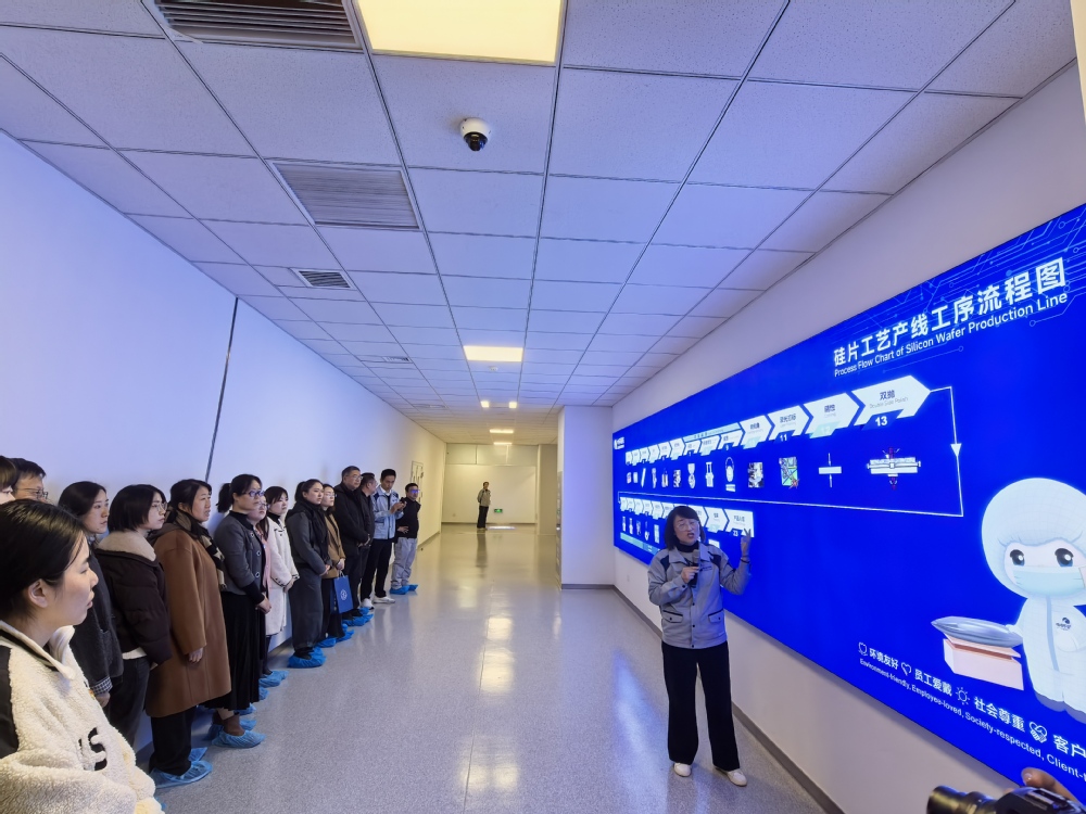 活动中,学院全体教工党员通过参观公司展厅及生产车间,近距离了解到半导体大硅片项目全系列区熔和直拉晶体工艺及12英寸测试片、抛光片、外延片的生产过程。真实感受到中环领先(徐州)半导体材料有限公司努力攀登全球半导体供应链行业珠峰,打造世界级先进硅片产业集群的信心决心,令人振奋。