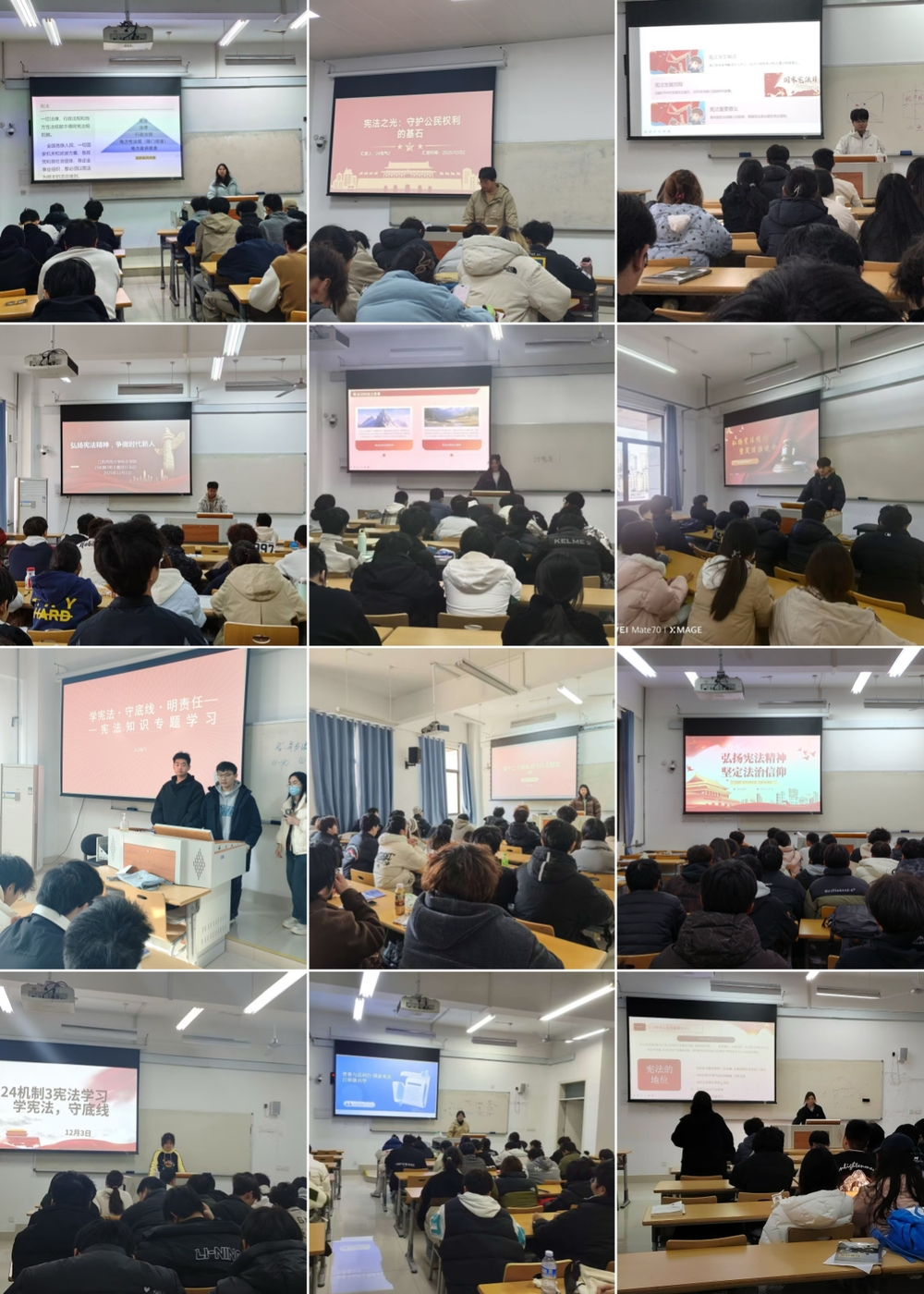 学院各团支部认真贯彻落实活动要求,通过专题学习会、主题团日等形式,系统开展宪法知识学习。重点围绕宪法发展史、基本原则及公民权利义务等内容进行深入讲解,确保基层团组织宪法学习教育全覆盖,切实增强青年学生的宪法意识。
