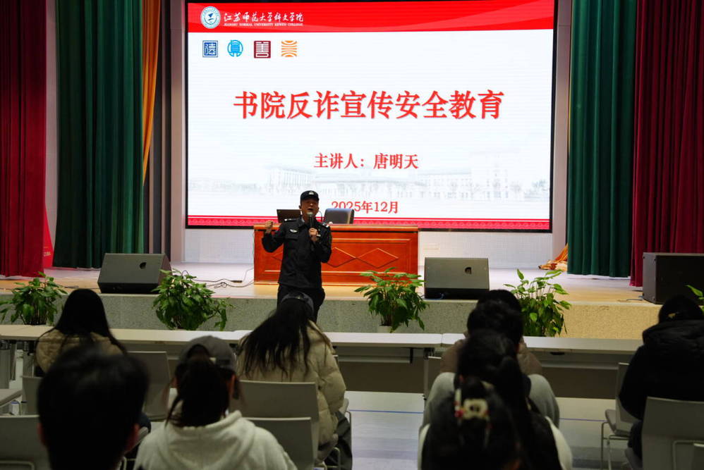 驻校民警唐明天结合高校多发电信网络诈骗案件,深入剖析了刷单诈骗、冒充公检法、虚假购物等诈骗手法,通过情景再现揭露骗子套路。唐警官还向寝室长们传授“不轻信、不转账、多核实”的防诈口诀,鼓励他们积极扮演“安全宣传员”角色,将反诈知识传递至每一位宿舍成员,共同筑牢寝室反诈“防火墙”。
