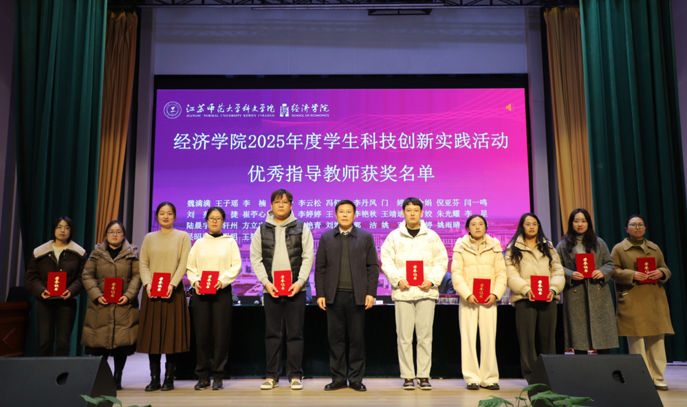 最后,王宁作总结讲话。他向受到表彰的获奖学生表示祝贺,向为科技创新实践工作辛勤付出的指导教师和工作人员致以诚挚感谢,并高度肯定了经济学院在科技创新育人方面取得的成绩。他指出,科技创新实践不仅是能力的比拼,更是意志与品格的锤炼,希望全体同学要永葆求知热情、锤炼实干本领、拓展跨界视野,主动将个人发展融入国家战略需求;同时希望学院持续优化创新实践生态,搭建更广阔平台,助力更多学子在更高级别科技创新活动中实现价值、成就梦想。