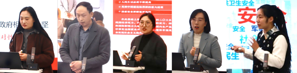 联合备课会上,江苏师范大学马克思主义学院魏姗、科文学院马仁峰、张茜、焦艳丽四位教师,分别就如何将党的二十届四中全会精神融入“习近平新时代中国特色社会主义思想概论”“中国近现代史纲要”“马克思主义基本原理”“思想道德与法治”等课程进行了交流汇报;江苏省第三届高校思政课教学展示特等奖获得者、马克思主义学院吴琼老师就“总体国家安全观”部分章节进行了教学示范展示。