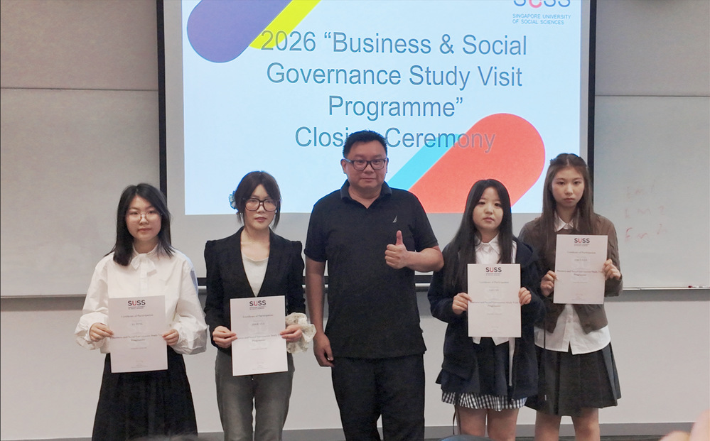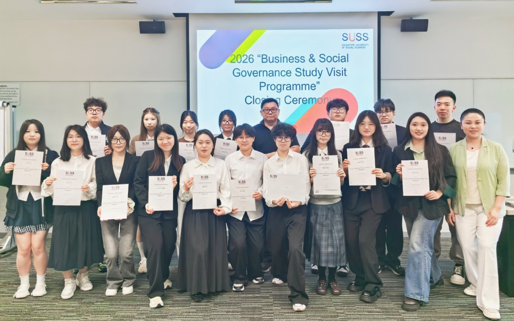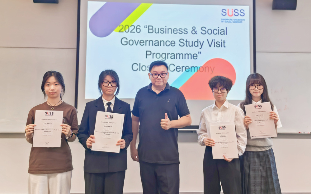 2026年1月18日至24日,学院选派的17名优秀学生,在史秋滢与杨腾两位老师的带领下,前往新加坡社科大学(SUSS)开展了为期七天的“商业与社会管理”主题访学。项目融合专业课程、名校参访、社会调研与城市考察,助力学子在行走中学习,在交流中成长。