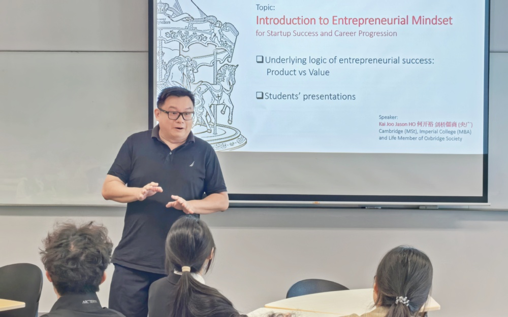新加坡社科大学客座教授、企业家与天使投资人Kai Joo Ho老师讲授“商业与创新创业”,聚焦创业核心逻辑、产品价值定位以及个人与产品的有效推广策略,为同学们带来切实可行的创业和就业指导。