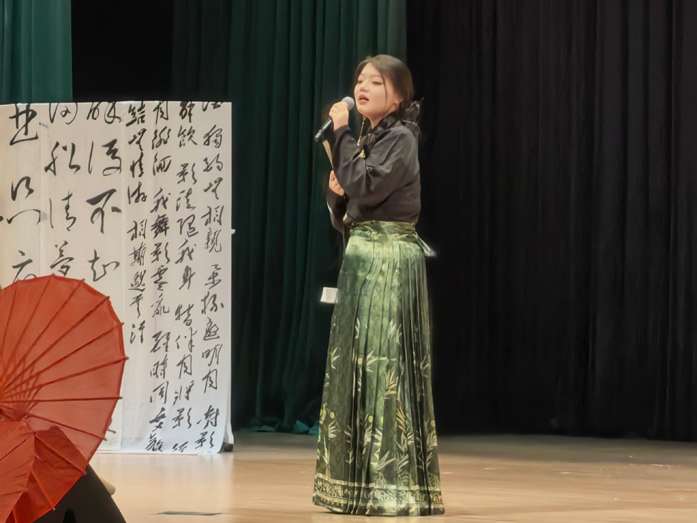 大赛在灵动雅致的开场舞《玉指生春》中拉开帷幕,现场气氛热烈、掌声不断。历经前期层层选拔,十六组选手成功晋级决赛。参赛选手依次登台,倾情演绎《光亮》《九儿》等兼具时代内涵与国风韵味的经典曲目。歌声或婉转悠扬,或铿锵有力,既展现青年学子扎实的演唱功底,又以歌声为纽带传递中华优秀传统文化的独特魅力,尽显当代青年朝气蓬勃、自信昂扬的精神风貌。比赛期间,诗意唯美的中场舞蹈《寄明月》意境悠远,趣味十足的互动抽奖环节点燃现场热情,灼灼风华服务队带来的《汉仪昭昭,国风泱泱》国风走秀更是惊艳全场,华服霓裳,生动展现了传统服饰之美与深厚文化底蕴,让国风美学在校园舞台上熠熠生辉。
