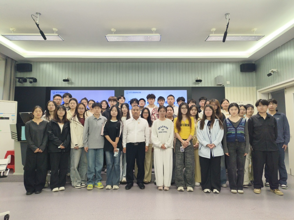 为深化产教融合育人实效,厚植青年学子家国情怀与使命担当,4月17日,电气与智能制造学院特邀产业教授高长松,以“扬青年意气,续千秋华章”为主题开展专题讲座。辅导员蒋楠、在校学生党员及部分入党积极分子共40余人到场聆听。讲座由学院学生第一党支部书记乔佳主持。