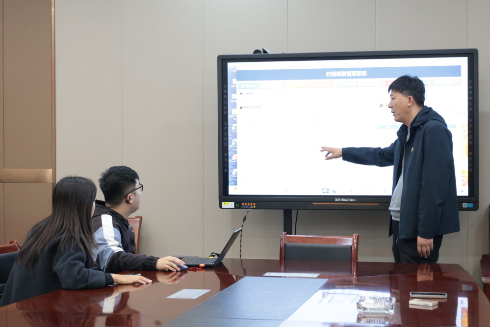 活动现场,孟辉在致辞中,对学院师生一行的到来表示热烈欢迎,详细介绍了马庄村在基层党建、网格化精细管理、乡村文化建设和数字化便民服务等方面的工作成效与治理经验。他指出,希望双方以此次校地共建为良好开端,持续深化常态化合作,依托高校专业资源和青年人才力量,不断助推乡村治理提质增效、基层服务提档升级。学生代表顾帅博现场为参会领导和网格员演示学院学生自主研发的村民电子档案信息管理系统。该系统集信息采集、分类管理、查询统计等功能于一体,操作简单高效、数据规范安全,切实解决基层信息管理繁琐、统计困难等难题,有效减轻网格员日常工作压力,为乡村数字化、精细化治理提供坚实技术保障,获得在场人员一致肯定与好评。