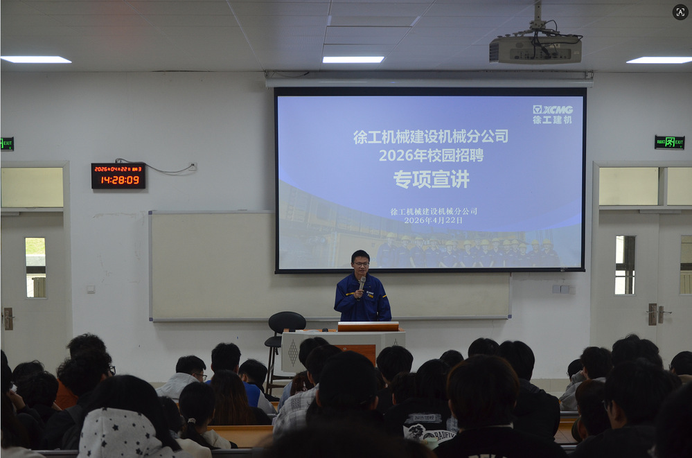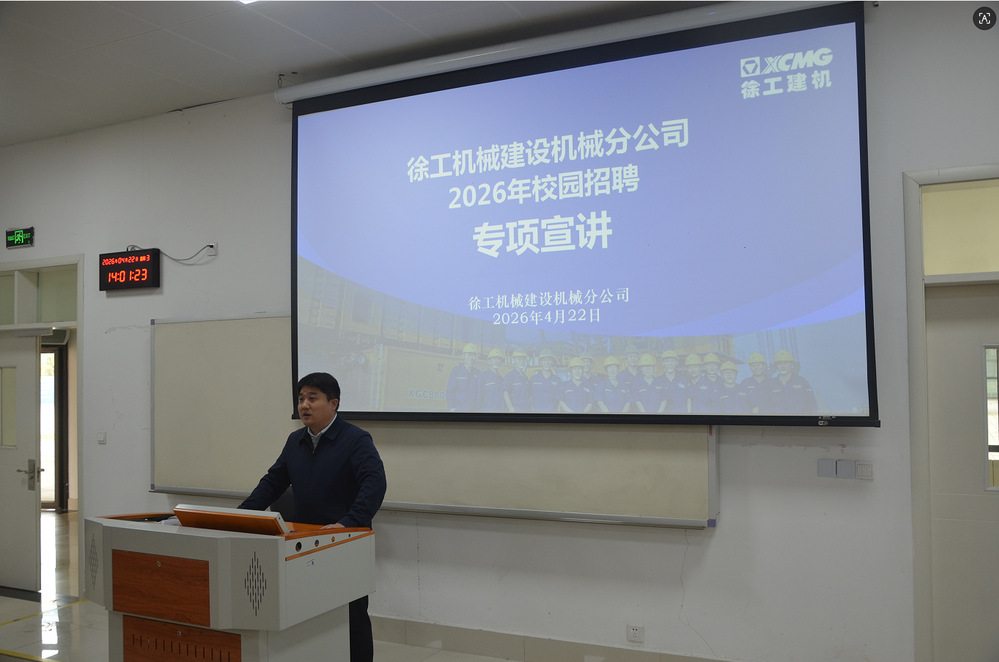 为扎实推进毕业生就业工作及建立优质就业平台,4月22日,电气与智能制造学院在笃行楼102教室成功举办徐工集团工程机械股份有限公司建设机械分公司(以下简称“徐工建机”)校企专场招聘会。学院部分2026届毕业生及2023级应用型人才培养教学试点班学生共计100余名人参加活动。