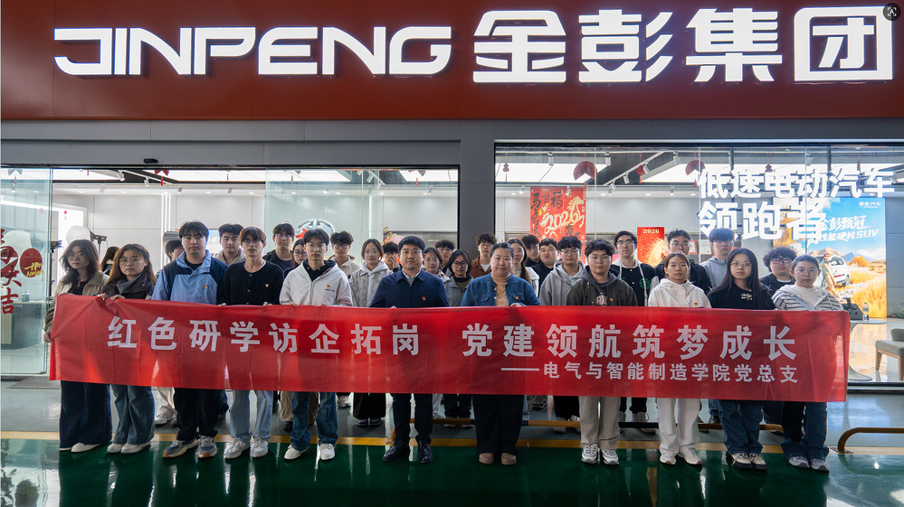 为深入学习贯彻党的创新理论,推动党建工作与青年成长、实践育人、就业服务深度融合,4月22日,电气与智能制造学院组织学生党员、入党积极分子及虚拟班学生代表走进学院合作企业单位金彭集团开展实践活动。通过实地研学、现场教学、座谈交流,引导青年学子在企业一线坚定理想信念、拓宽就业视野、锤炼过硬本领。