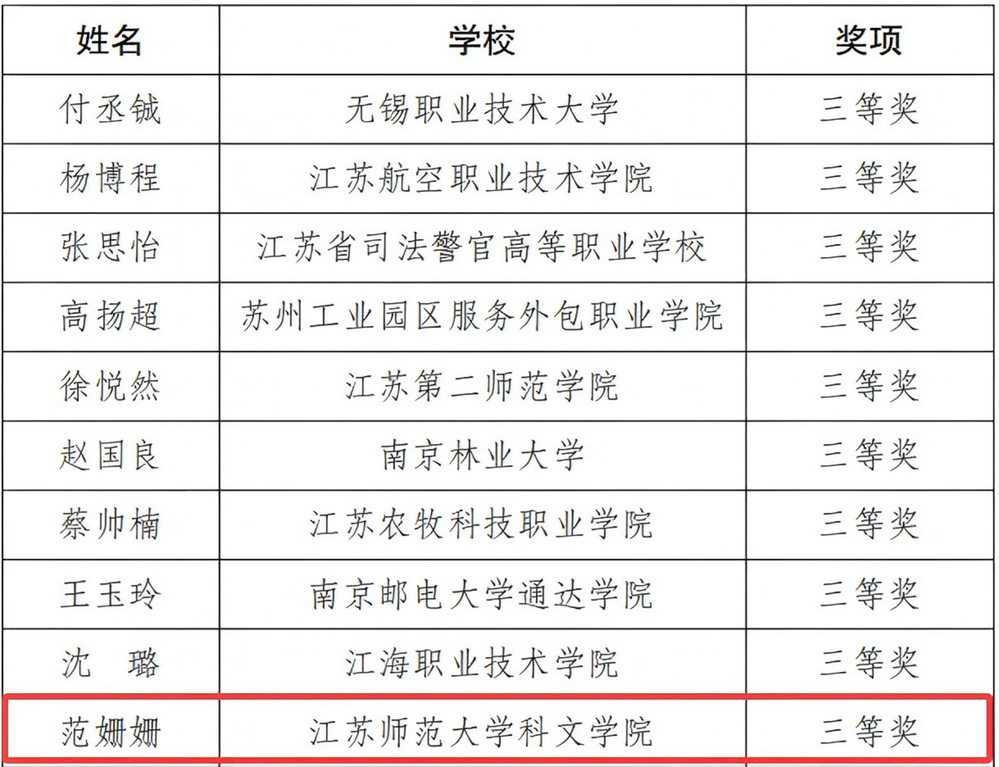 9月27日至28日,共青团江苏省委联合中共江苏省委教育工委、江苏省社会科学院、江苏省学生联合会在中国矿业大学举办第五届江苏高校百校万名团干部思政技能大比武决赛,我院公共教育学院教师张茜荣获思政教师组二等奖,文理学院23社工团支书范姗姗、传媒与设计学院24播音1团支书徐海贝分别荣获基层团支部书记专项赛组三等奖。