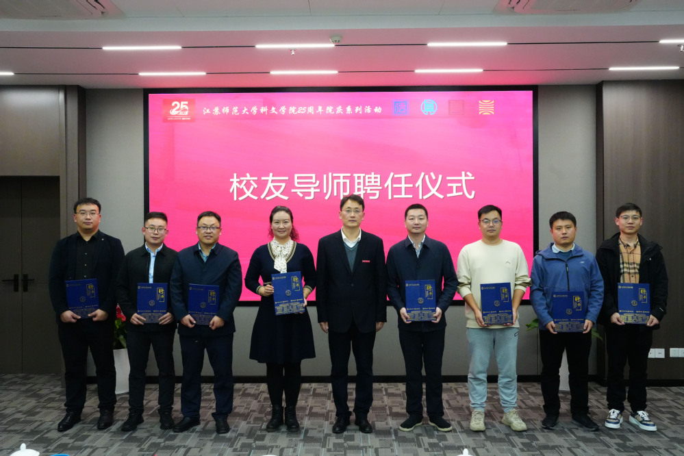 秦晓菁向与会嘉宾、师生介绍了“一站式”学生社区及四所书院的建设和发展情况。北京市邦盛(南京)律师事务所主任范永玲,咸阳市三原县陂西镇党委书记李伟,禾朋友主理人、禾健云仓董事长高松,徐州医科大学教师、深圳大学博士后仝申,合肥贝洛希信息科技有限公司董事长左冬青,徐州市产业发展控股集团有限公司综合部(人力资源部)部长王珂,昆山市乐仁公益发展中心党支部书记、事业部主管金松松,以及浙江吉利控股集团有限公司数字化项目管理经理张长洲共八位在创业、升学、就业、志愿服务等多领域卓有建树的校友正式受聘为书院行业导师;随后,王健为导师们逐一颁发聘书,四位书院执行院长分别向导师赠送了书院纪念品。