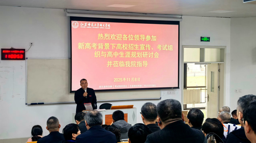 2025年11月8日上午,江苏、河南、安徽部分市县考试中心负责人、中学校长一行84人莅临我院参观交流。学院教学事务部副部长、招生办公室主任崔鹏飞代表学院接待来访嘉宾并主持交流活动。