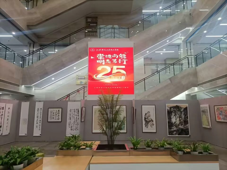 近日,“廿五华章·墨韵科文”建院25周年师生书画巡礼在学院图书馆雅致启幕,本次巡礼由江苏师范大学科文学院与美术学院联合主办,科文学院公共教育学院、传媒与设计学院、图书馆、院团委、院工会书画协会等多个单位共同承办。