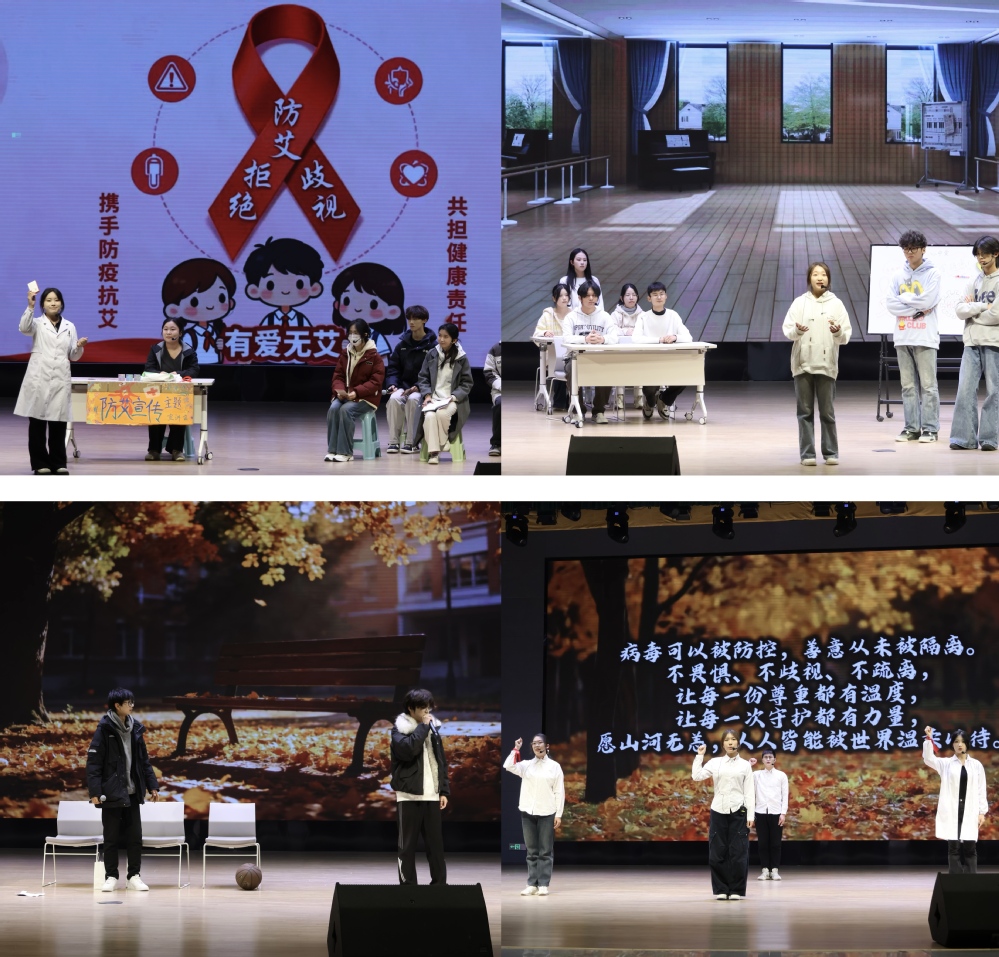 本次舞台剧大赛是学院防艾教育体系中的特色实践活动之一。区别于传统讲座、宣传手册等教育形式,活动以“艺术演绎+主题教育”的创新模式,将防艾知识转化为具象化、场景化的舞台情节,让学生在观看与演绎中主动感知、深刻理解,有效破解了防艾知识普及中“枯燥说教”的难题。此次活动不仅精准传递了防艾核心知识,更引导学生树立平等包容的价值观,为营造无歧视校园环境筑牢基础,也为学院全方位、多维度开展防艾教育注入了鲜活力量。