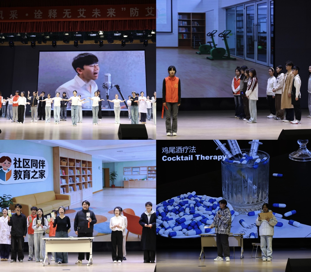 大赛在开场舞《Attention》的动感节奏中拉开帷幕。活动分为“寻声·破界”“聚力·共鉴”“携光·同行”三个篇章,八支参赛队伍依次登台,紧扣防艾核心主题展开沉浸式演绎。《掌心的红丝带》《戏中“艾”·心中爱》等剧目聚焦校园场景,生动再现了青少年对艾滋病认知的误区与转变,传递科学防艾理念;《心墙之外·爱抵“万”艾》《红丝带下的“研”路同行》通过温情叙事,诠释了困境中友谊的支撑力量与对艾滋病感染者的包容关怀;《晨曦漫过寂静时》《另一种声音》则跳出校园视角,以多元叙事呼吁社会各界消除歧视、共担防艾责任。这些作品从不同场景切入,全面演绎了防艾主题。