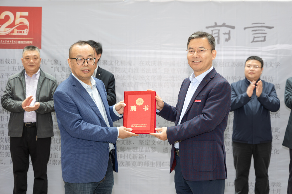 院长张立荣向刘淮颁发捐赠证书及美育导师聘书