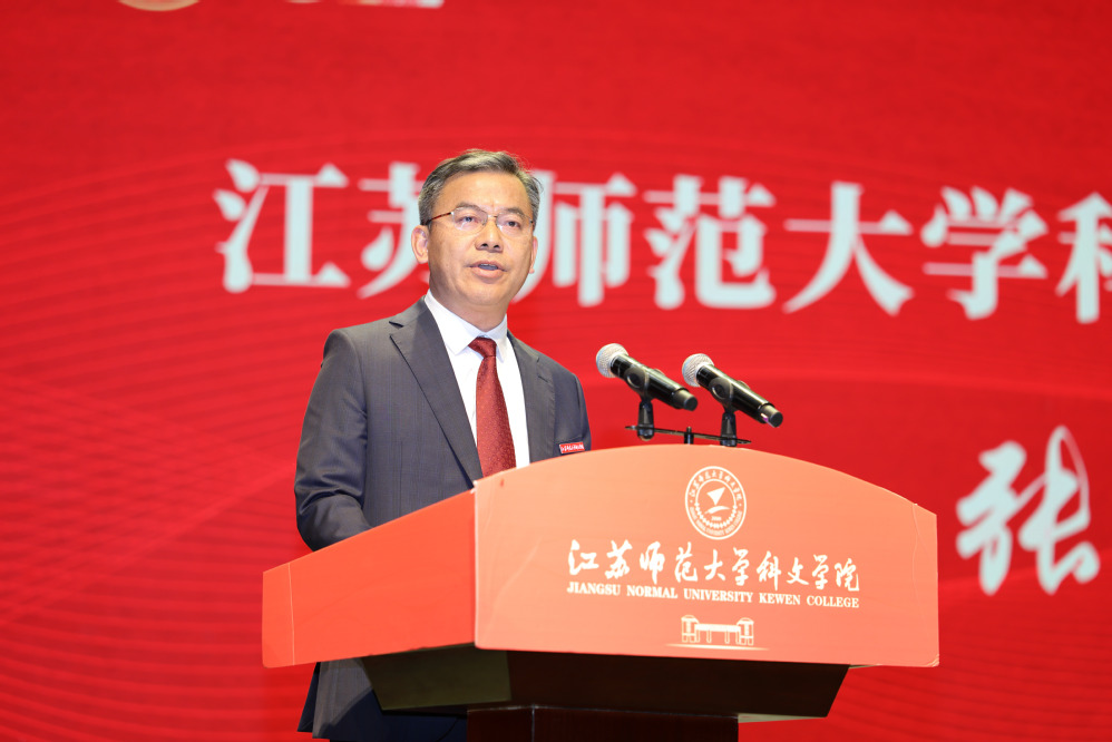 杜增吉对大会的召开表示祝贺。他指出,25年来,科文学院在徐州市委、市政府支持下,秉承苏师文脉与办学精髓,扎根徐州、辐射江淮,朝着特色鲜明的高水平应用型本科院校稳步迈进。江苏师范大学将始终把科文学院发展纳入整体规划,持续践行“命运共同体”理念,全力支持学院深化教育改革、推进教学创新、提升服务社会效能。期待学院以本次大会为契机,优化专业结构、强化师资建设、深化产教融合,培育更多“下得去、用得上、留得住、干得好”的实用型人才。