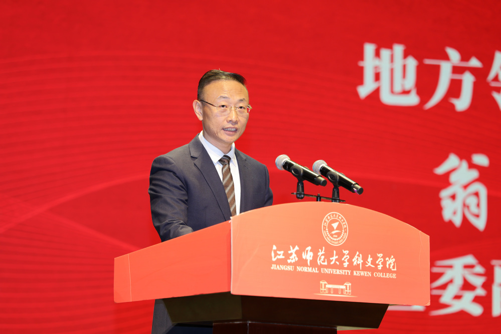 刘伟代表徐州市委、市政府向大会的召开表示祝贺,向长期以来关心助力徐州发展的各界人士表示感谢。他指出,江苏师范大学作为徐州最早的高等本科高等院校,建校以来,充分发挥学科优势与人才特色,持续以智力与实践赋能城市发展。他表示,科文学院自2000年成立以来,始终坚持以国家战略性新兴产业与科技发展为导向,聚力深化体制机制改革,加强师资队伍建设,不断提升办学治院水平,各项事业取得丰硕成果。他希望科文学院以本次大会为新起点,深入贯彻落实党的二十届四中全会精神,更加紧密对接徐州经济社会发展需求,持续深耕工程机械、数字经济等重点领域,深化校地协作,培养更多高素质应用型人才,为徐州高质量发展和现代化建设继续提供强劲的“科文力量”。