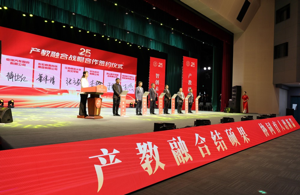 翁乐天在致辞中指出,自2019年新校区启用以来,科文学院始终与贾汪同频共振,现已成为贾汪全面转型发展的重要“助推器”,校地融合成果丰硕。师生以“田间课堂”助力岐山村乡村振兴、赋能陶瓷产业,以创意传播马庄村“香包情”,以志愿服务丰富潘安湖景区人文内涵,校企合作更让书本知识转化为创新动能。他表示,未来贾汪区委、区政府将强化要素保障、深化产教融合、优化服务供给,全力支持学院高质量发展,期待学院培育更多“懂贾汪、爱贾汪、建贾汪”的优秀人才,为地方发展注入更强动力。