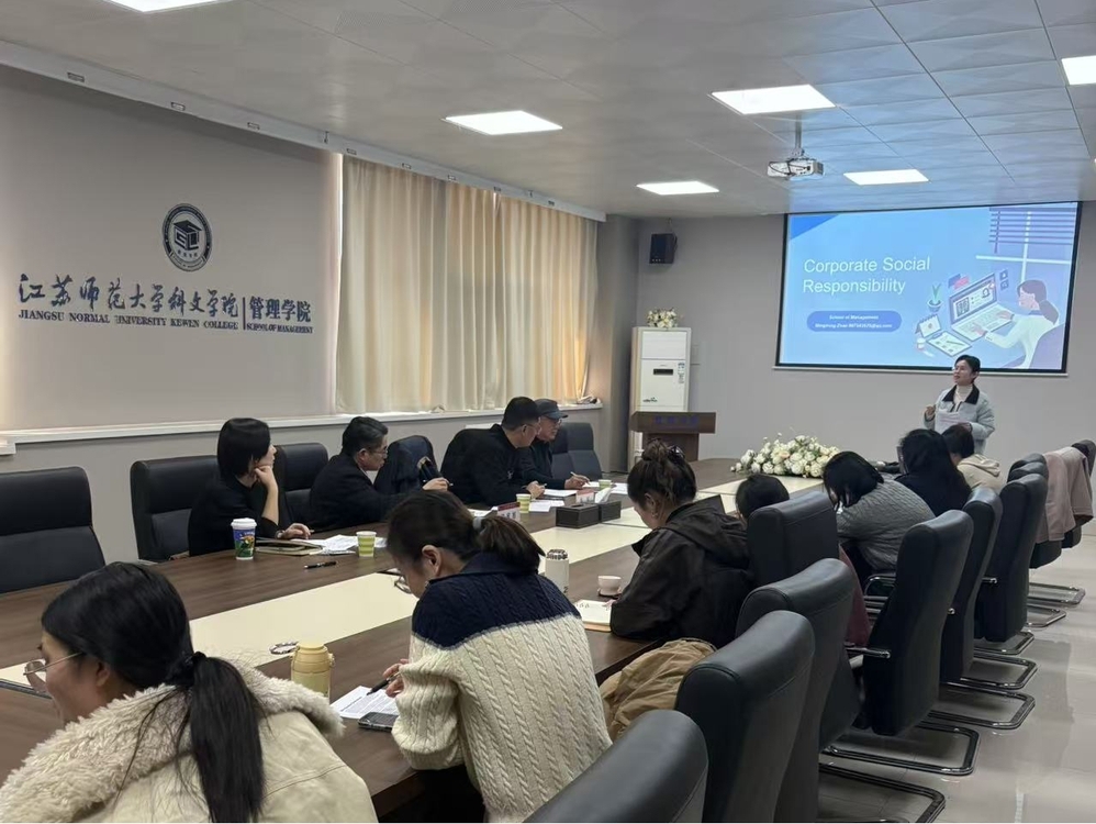 为充分发挥具有海外留学背景教师的资源优势,深化国际商务文化教学实践改革,推进学院国际化办学进程,提升学生语言表达能力与就业竞争力,12月3日,管理学院在教五楼423会议室举办国际商务文化与管理专业英语微教学竞赛活动。科文学院国际合作交流专员李旭、文理学院院长侯家旭、管理学院院长李锦生、院长助理袁冲受邀担任评委,9位具有海外留学背景的管理学院教师参赛。