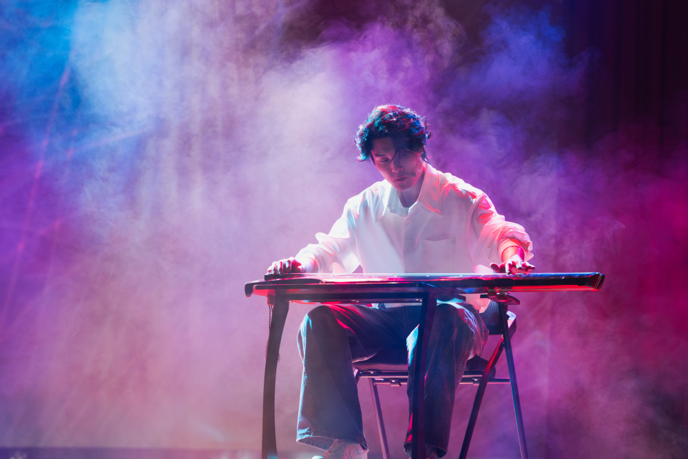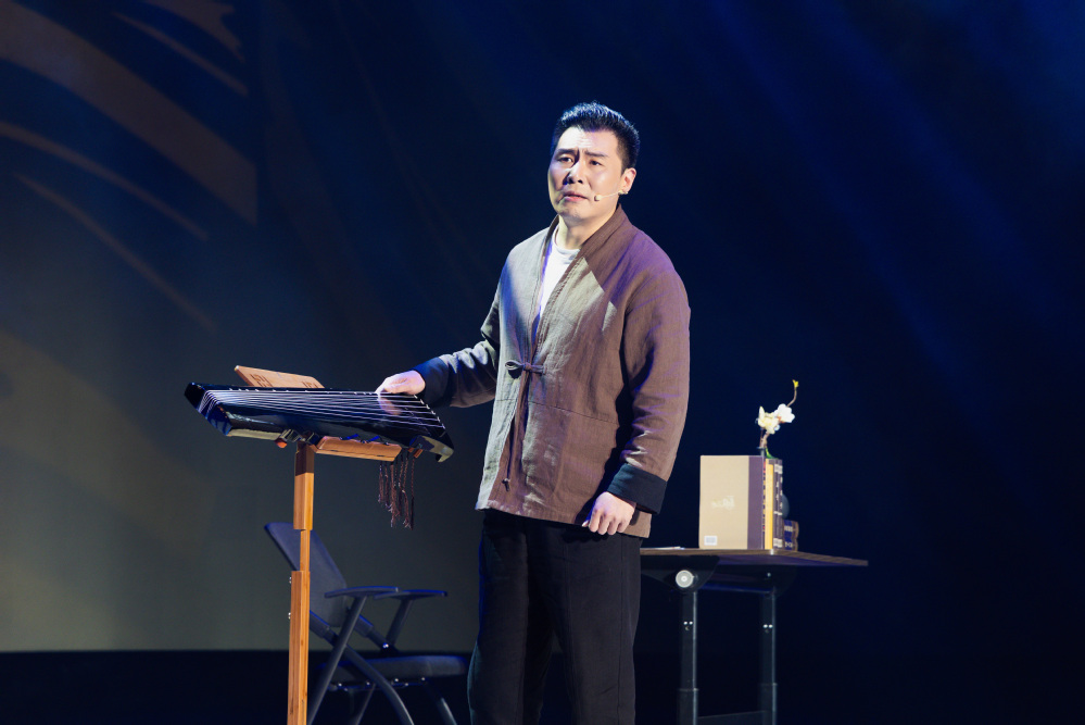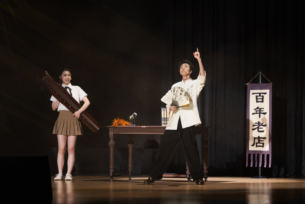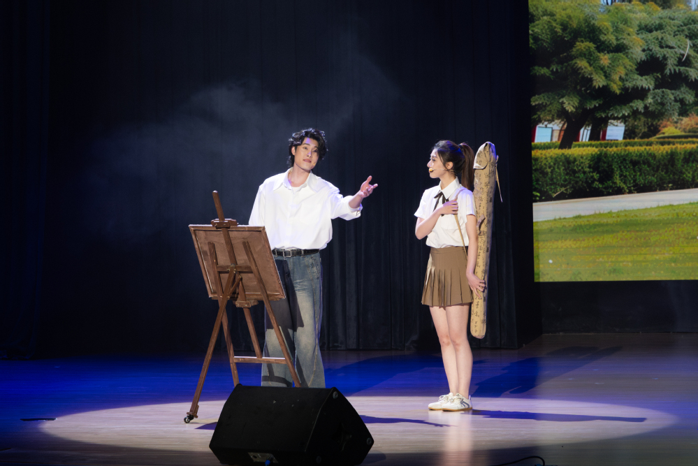 演出当晚,报告厅内座无虚席、弦歌不辍。南艺音乐剧系师生与多位特邀艺术家、非遗传承人联袂献艺,近20个唱段与舞段在当代戏剧与流行音乐语汇中融入古琴、昆曲、江南丝竹、苏州评弹、苏绣等江苏特色非遗元素,既有传统遗韵的绵延宁静,又有现代艺术的生机活力。时空交错间,伏羲制琴、师延乱商、师旷斗琴等历史传说在水墨光影中重现,昆曲经典经创新改编与现代音乐剧碰撞出独特艺术张力。高潮处,师昂独唱《心念》点破“琴声即心念”的千年哲思;江南则以一曲《古今流觞》清唱,放下执念、完成从器物修复到心灵修复的成长蜕变。千年琴音化为文化传承的青春注脚,全场掌声经久不息。