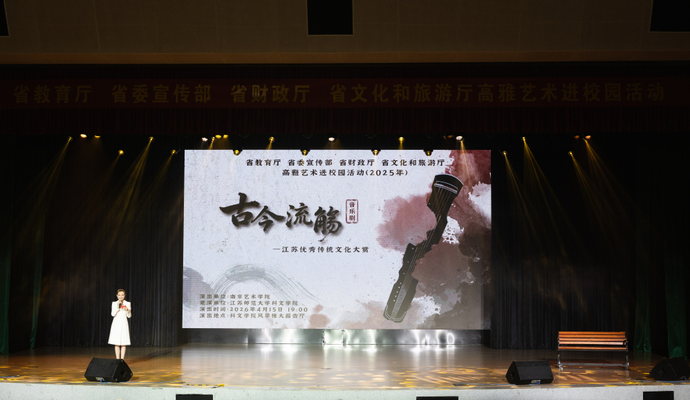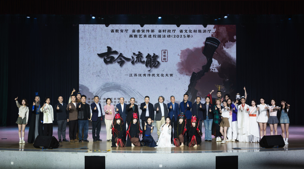4月15日晚,南京艺术学院原创音乐剧《古今流觞——江苏优秀传统文化大赏》在学院风华楼大报告厅倾情上演,为现场师生带来一场穿越千年的美学盛宴。江苏师范大学、南京艺术学院及科文学院相关领导与近千名师生一同观看了演出。
