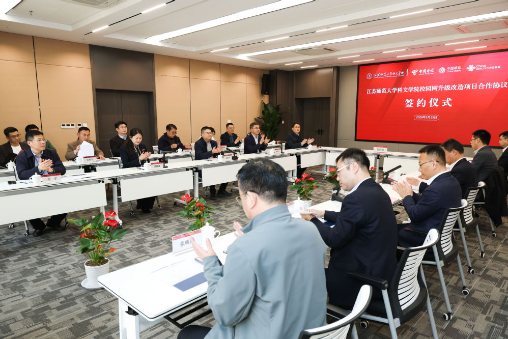 中国电信徐州分公司、中国移动徐州分公司、中国联通徐州分公司负责同志分别致辞。他们表示,将认真落实协议各项内容,持续深化校企协同合作,全力支持学院推进智慧校园建设。