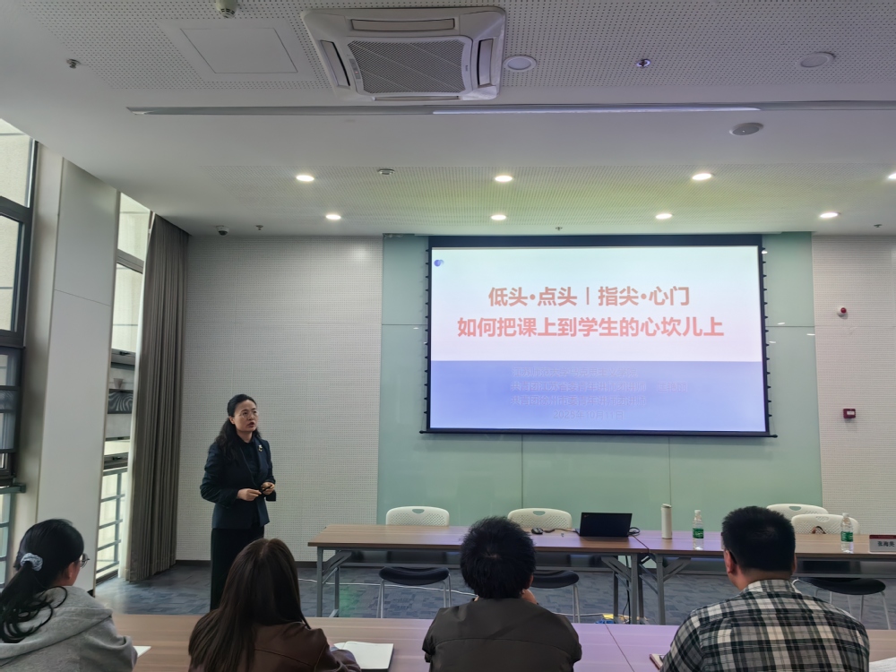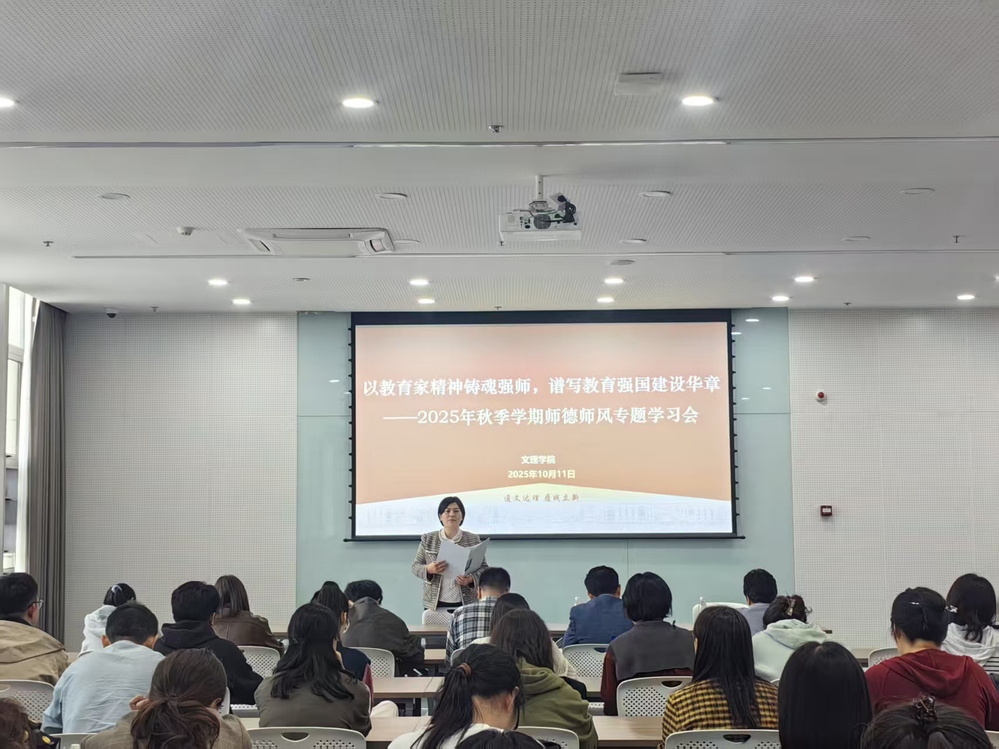 10月11日下午,在图书馆四楼报告厅,文理学院邀请第三届全国高校思想政治理论课教学展示特等奖获得者、江苏师范大学2025年“立德树人奖教金”获得者匡艳丽老师来院作《低头·点头|指尖·心门:如何把课上到学生的心坎儿上》专题讲座,文理学院全体教职工参加学习。