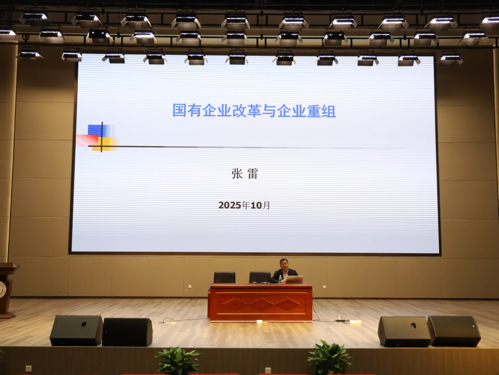 讲座中,张雷介绍了现阶段国有企业与民营企业的整体情况,强调了国有企业改革在中国特色社会主义市场经济中的重要性,阐释了企业制度、现代企业制度、中国特色现代企业制度等核心概念,并以徐工集团工程机械股份有限公司反向吸收合并徐工集团工程机械有限公司为案例,说明了国有企业改革中的企业重组的方式和特点,使学生理解了什么是国有企业改革、为什么要进行国有企业改革、如何进行国有企业改革。他指出,优秀的财务管理与会计学人才,不仅要掌握精深的专业技能,更要具备洞察行业与市场的宏观视野,从而躬身入局,助力企业完成深层次改革。同时,未来的财会工作已超越传统核算范畴,正深度融入企业战略决策,这要求财会专业教育必须紧密结合产业实际,做到“接地气、贴产业”。