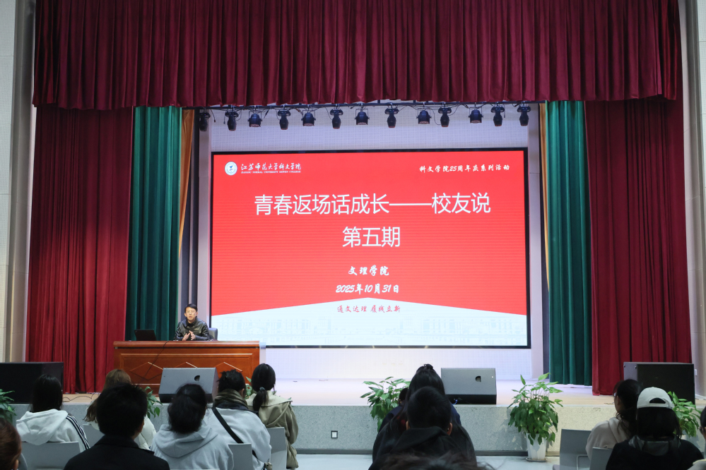 10月31日下午,文理学院25周年庆系列活动之“青春返场话成长-校友说”第五期活动在大学生活动中心小报告厅举行。本次活动特邀科文学院2002级汉语言文学专业优秀校友、资深新闻人王岩,以“永远在路上:一个新闻人的坚守与追求”为题开展专题报告。文理学院党总支书记张海英、学工办主任程开龙、辅导员延鸿潇以及部分学生代表参加了此次活动。