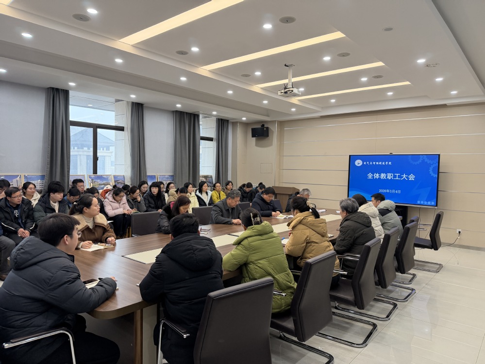 为统筹推进新学期各项工作任务,凝聚发展共识,压实工作责任,3月4日上午,电气与智能制造学院在格物楼510会议室召开了2026年春季学期全体教职工大会,学院领导班子成员及全体教职工参加会议,会议由学院党总支书记沈健主持。
