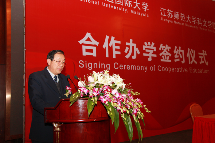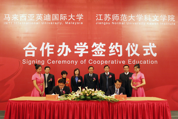 12月12日下午,徐州开元宾馆会议厅内灯光璀璨,喜气洋洋,科文学院与马来西亚英迪国际大学合作办学协议签约仪式在此隆重举行。马来西亚英迪国际大学副校长林玮,中国区主任王晓怡,江苏师范大学副校长、科文学院董事长何保全,科文学院领导费春、程大中、杨在华、顾振中、刘毓江及部分师生代表参加了此次签约活动。签约仪式由科文学院党委书记程大中主持。